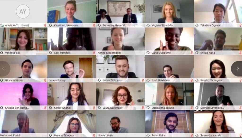 The second presentation was given by the Peace & Security track, in which I’ve been working and negotiating for the last 2 months. Having finalised our communiqué just yesterday (after a tense last-minute negotiation on a single call-to-action, as James alluded to in his diary from Tuesday!) we’d rushed into action on developing our presentation. I presented our proposals on Disaster Mitigation (learning lessons from Covid-19 ahead of future non-traditional crises) & on Democratic Resilience (with policies on election integrity, mis- and dis-information, and coercive economic diplomacy, among others) and found the Q&A a stretching intellectual exercise – and it was great to deepen the discussion with a really engaged audience.
